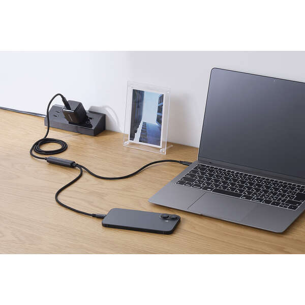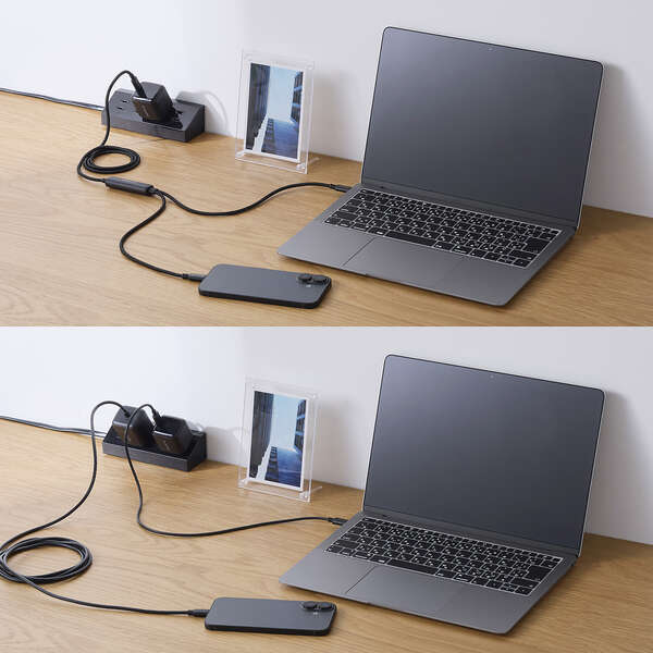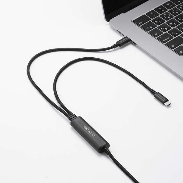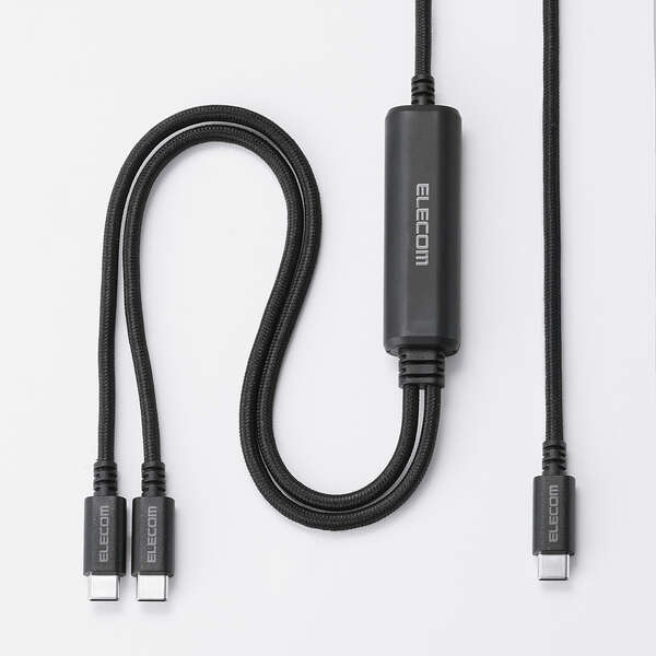 これ一本でスマホ2台を同時に高速充電!2つのUSB Type-C(TM)(USB2.0)ケーブルを1つにまとめた、USB Power Delivery(最大100W)対応のケーブルです。高密度配線構造・ナイロンメッシュケーブルを採用し、屈曲や傷に強い高耐久タイプです。