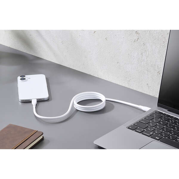 シリコン×磁石の力で、くるんとまとまり小さく収納!持ち運びに便利なUSB Type-C(TM)ケーブルです。鉄製の机や棚に吸着し、配線を自在にアレンジできます。なめらかで絡みにくいシリコン素材を採用。USB Power Delivery最大60Wの充電に対応し、スマートフォンやタブレットなどを充電できます。