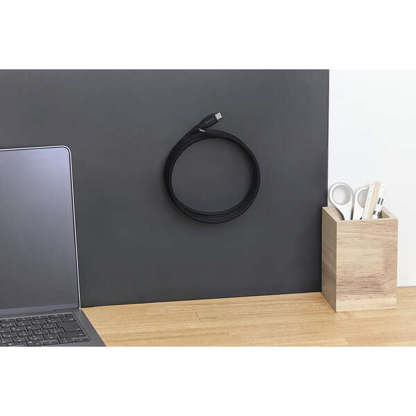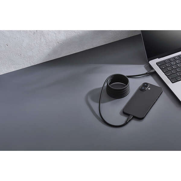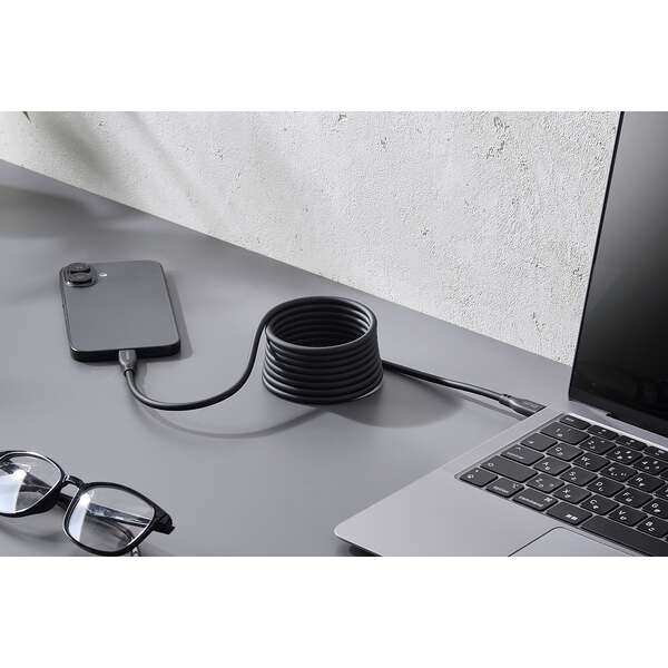シリコン×磁石の力で、くるんとまとまり小さく収納!持ち運びに便利なUSB Type-C(TM)ケーブルです。鉄製の机や棚に吸着し、配線を自在にアレンジできます。なめらかで絡みにくいシリコン素材を採用。USB Power Delivery最大60Wの充電に対応し、スマートフォンやタブレットなどを充電できます。