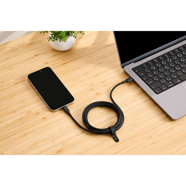 やわらかく断線しにくいシリコンメッシュタイプのUSB Type-C(TM)ケーブルです。シリコンケーブルの表面にメッシュ加工を施すことで、シリコン素材のやわらかさとナイロンメッシュの耐久性を持ち合わせた、手触りの良いケーブルです。