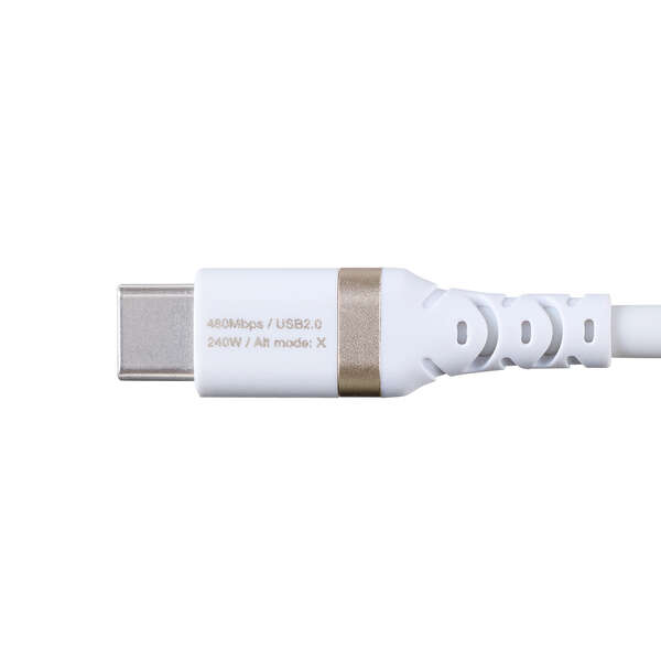 やわらかくなめらかな手触りのシリコン素材を採用した、取り回しやすいUSB Type-C(TM)ケーブルです。最大240Wのハイパワー充電に対応し、スマートフォンやノートパソコンなどさまざまな機器の充電と、最大480Mbpsでのデータ転送が可能です。