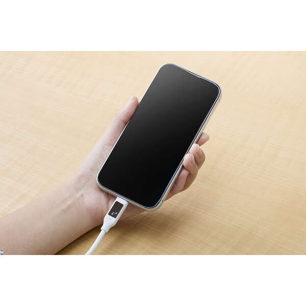 充電状況がひと目で分かる、電力ディスプレイ付きのUSB Type-C(TM)ケーブルです。充電電力値がリアルタイムで表示されるため、正しく充電できているか確認でき、安心です。ケーブル外皮にシリコン素材を採用し、やわらかく取り回しやすい、なめらかで手触りの良い風合いです。最大240WのUSB Power Delivery充電や、最大480Mbpsでのデータ転送が可能です。
