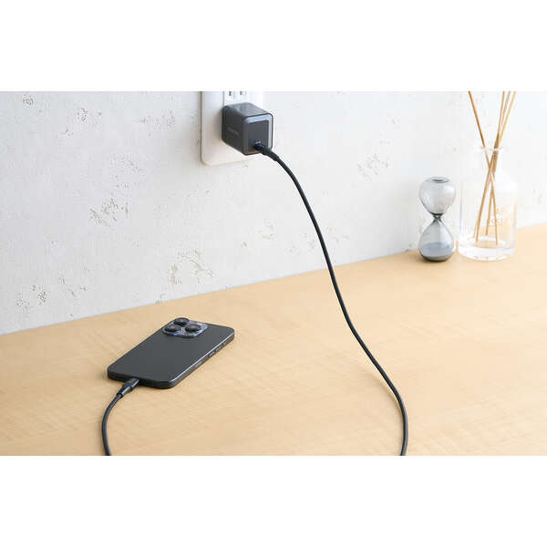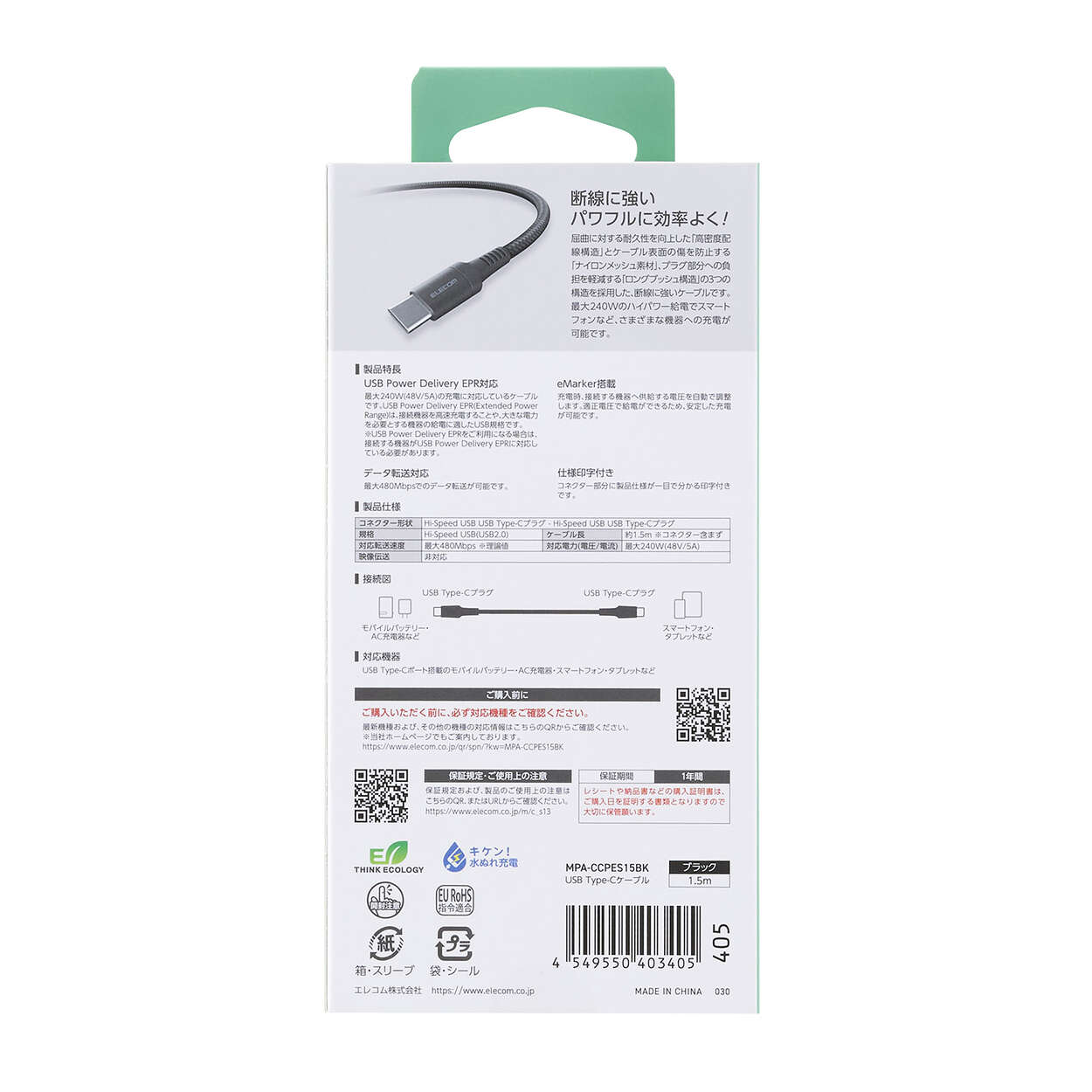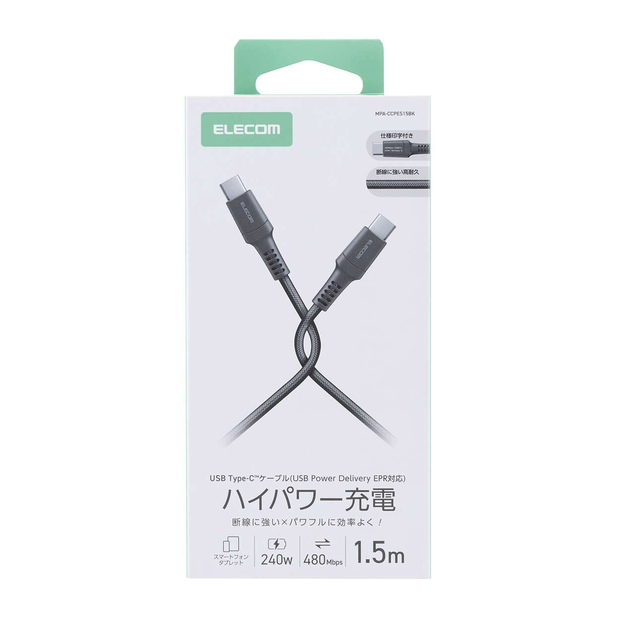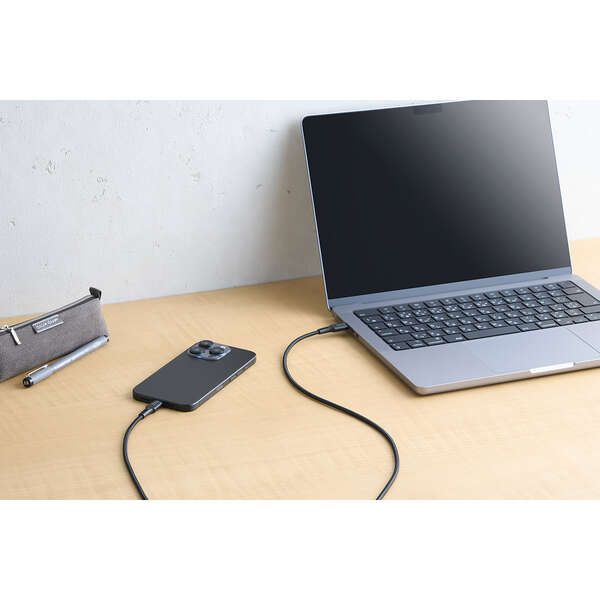 ナイロンメッシュ素材、高密度配線、ロングブッシュを採用した、断線に強い高耐久仕様のUSB Type-C(TM)ケーブルです。最大240Wのハイパワー充電で、スマートフォンやノートパソコンなどさまざまな機器への充電と、最大480Mbpsでのデータ転送が可能です。