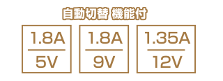定格出力電流 1.8A(5V,9V時) / 1.35A(12V時)