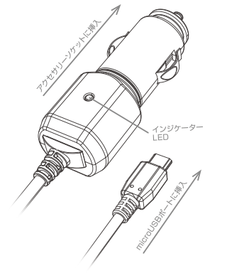 microUSBコネクタを装備したスマートフォン/タブレットに接続し、自動車の中でそのまま充電可能です。