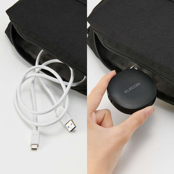 ケースはコンパクトで軽く、持ち運びに便利。コネクターごと収納できるから、かばんの中でねじれたり断線したりすることもありません。