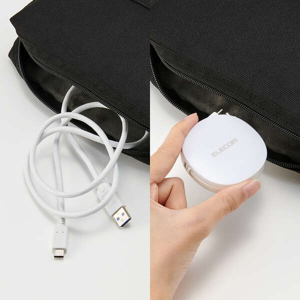 ケースはコンパクトで軽く、持ち運びに便利。コネクターごと収納できるから、かばんの中でねじれたり断線したりすることもありません。