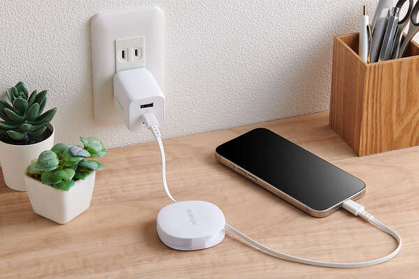 ケーブルを引き出す際のカチカチ音が響きにくい、静音性の高いモデルです。オフィスなど周りに人がいる場所でも安心して使えます。