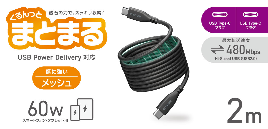 磁力でくっつき、巻くだけでまとまるUSB Type-C™ケーブル