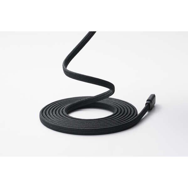 外皮には、耐久性に優れたナイロンメッシュを採用し、ケーブル表面の傷を防止します。薄型フラットケーブルのため、収納時に小さくまとめやすいです。