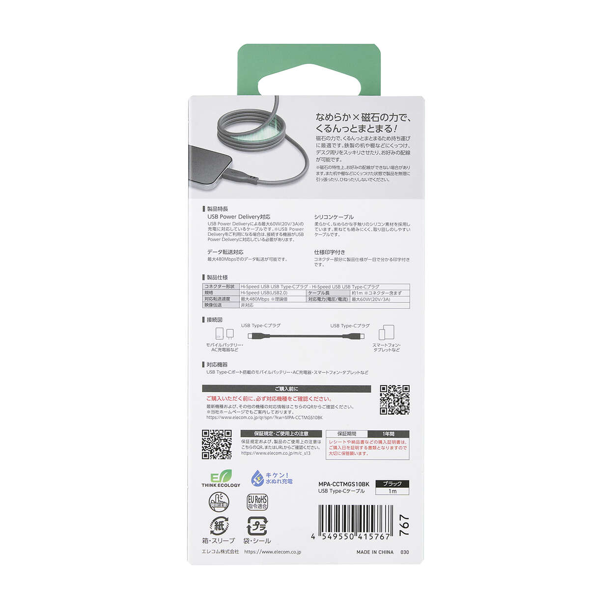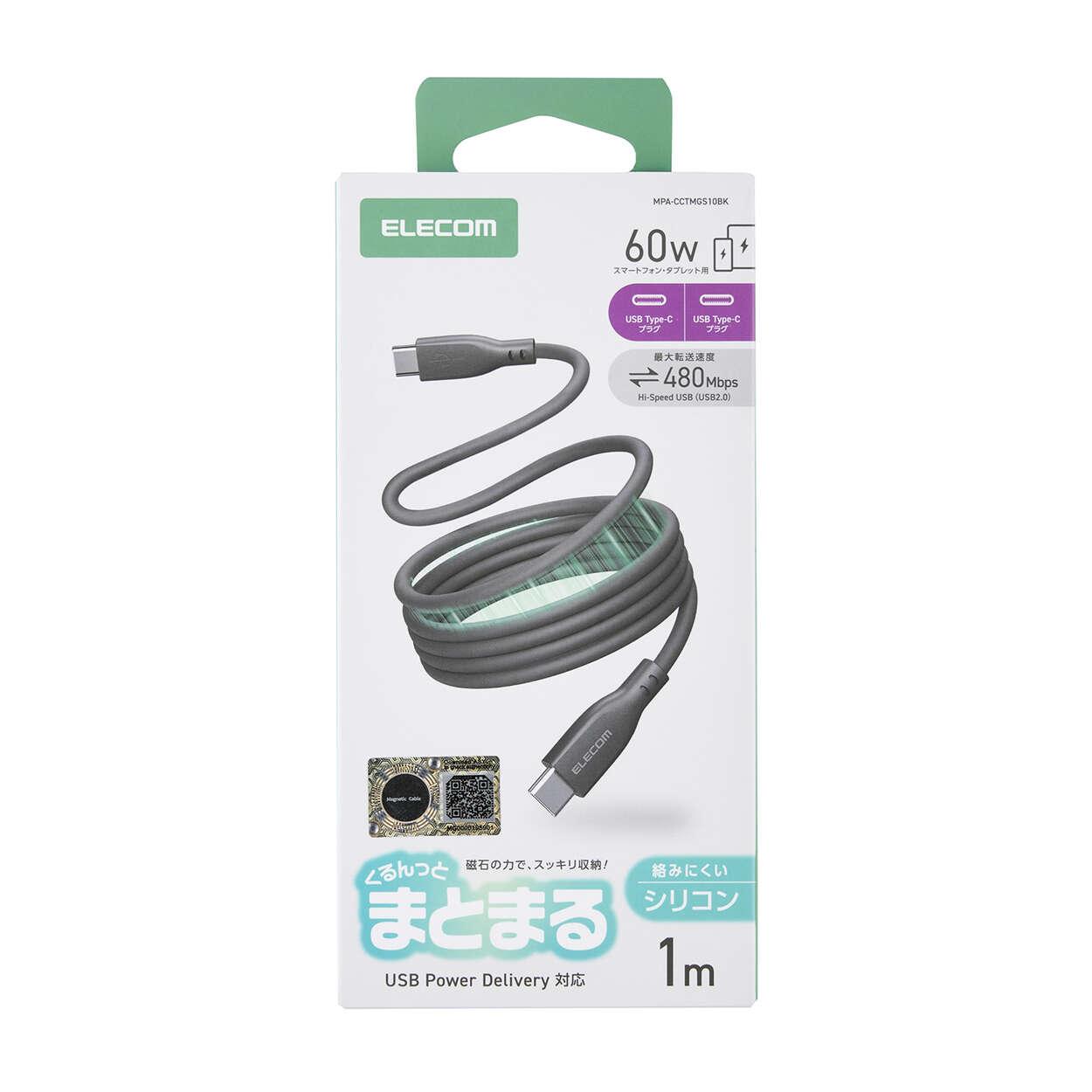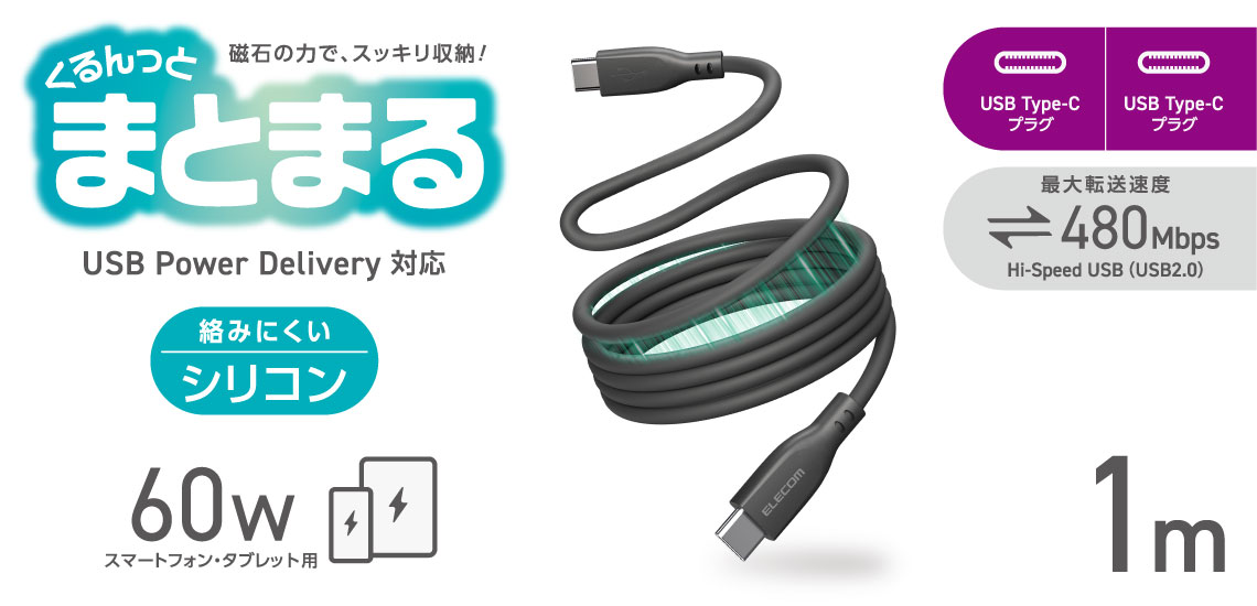 磁石の力でくっつき、巻くだけでくるんとまとまるUSB Type-C™ケーブルです。