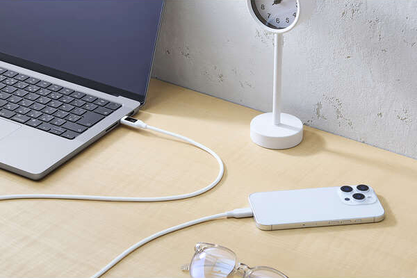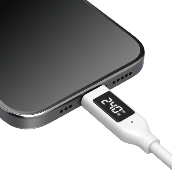 充電状況がひと目で分かる、電力ディスプレイ付きのUSB Type-C(TM)ケーブルです。充電電力値がリアルタイムで表示されるため、正しく充電できているか確認でき、安心です。ケーブル外皮にシリコン素材を採用し、やわらかく取り回しやすい、なめらかで手触りの良い風合いです。最大240WのUSB Power Delivery充電や、最大480Mbpsでのデータ転送が可能です。