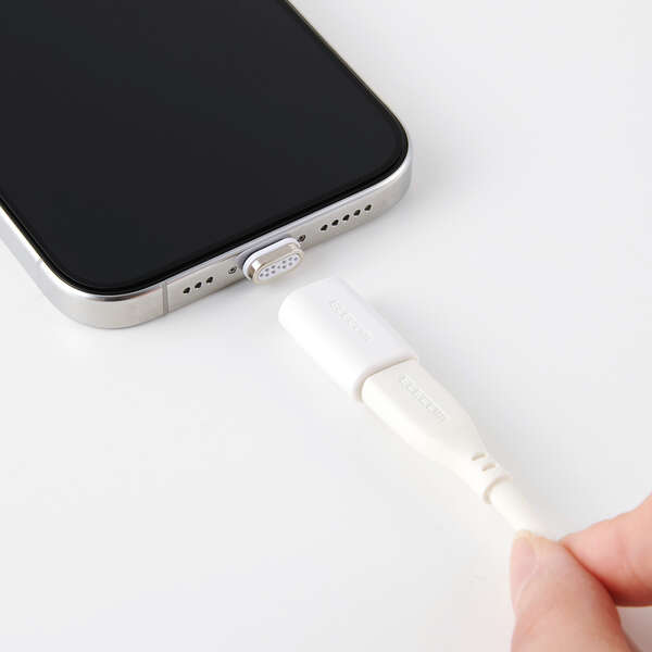 ピタッとくっついて、かんたん着脱&充電!磁力でしっかり接続するUSB Type-C(TM)着脱式コネクターを採用した、ストレートタイプのマグネットアダプターです。端子をスマートフォンなどの機器に挿したまま、ワンタッチでケーブルの着脱が可能。充電時に抜き挿しする手間がなく、機器やコネクター部分への負荷も軽減します。お手持ちのケーブルに本製品を接続すれば、簡単に着脱式コネクターに変換できます。コネクター部分にブレーカーを内蔵し、ホコリなどが入っても接続時のショートを防止して機器を守る安心設計です。