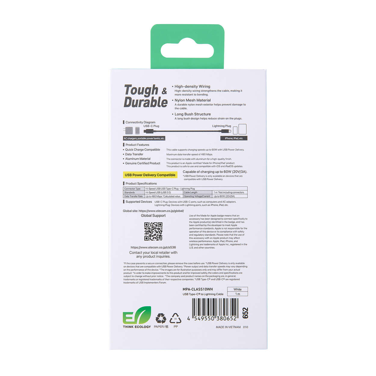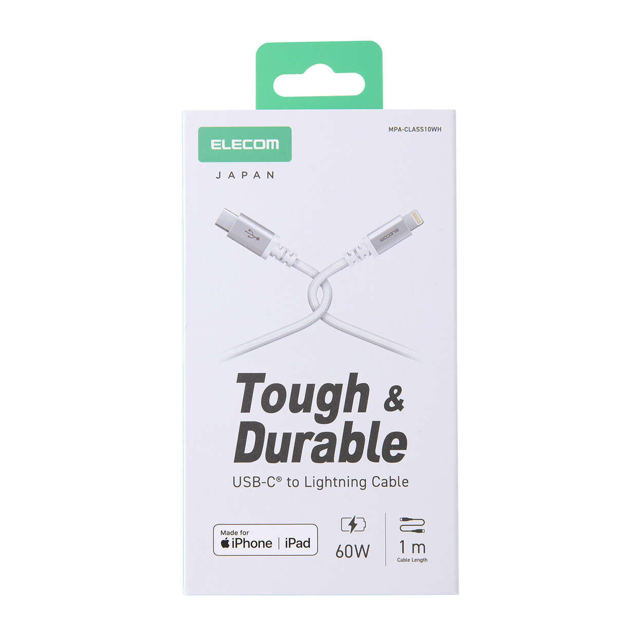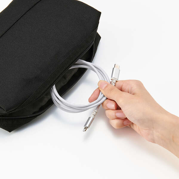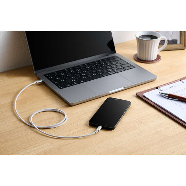断線に強い高耐久のUSB Type-C(TM)(USB-C(TM)) - Lightningケーブルです。耐久性を向上させたケーブルとプラグへの負荷を軽減した、断線に強い製品です。Lightningポートを搭載したiPhoneなどと、USB Type-Cポートを搭載したパソコンや充電器を接続し、充電・データ転送ができます。