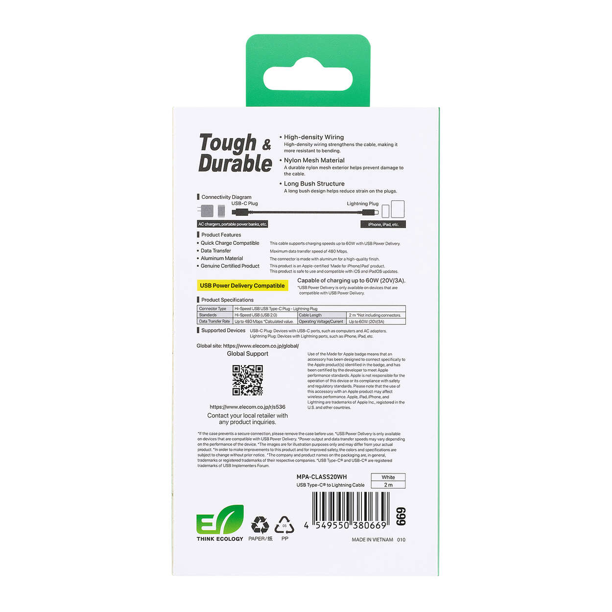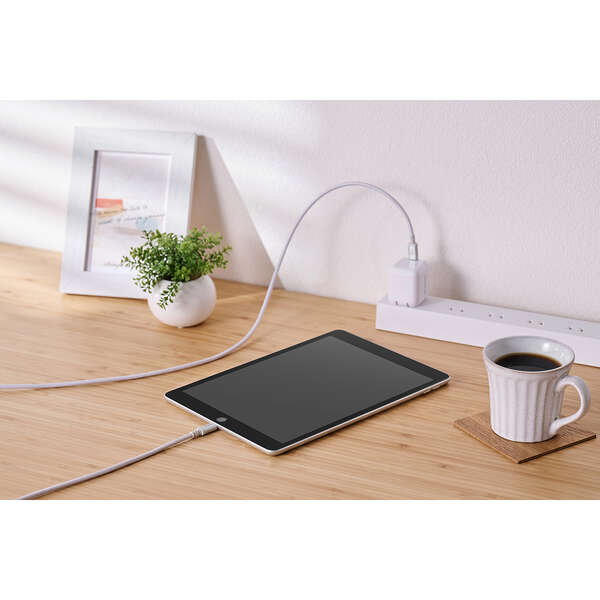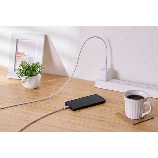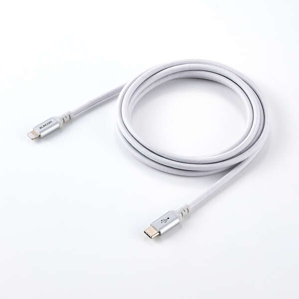断線に強い高耐久のUSB Type-C(TM)(USB-C(TM)) - Lightningケーブルです。耐久性を向上させたケーブルとプラグへの負荷を軽減した、断線に強い製品です。Lightningポートを搭載したiPhoneなどと、USB Type-Cポートを搭載したパソコンや充電器を接続し、充電・データ転送ができます。