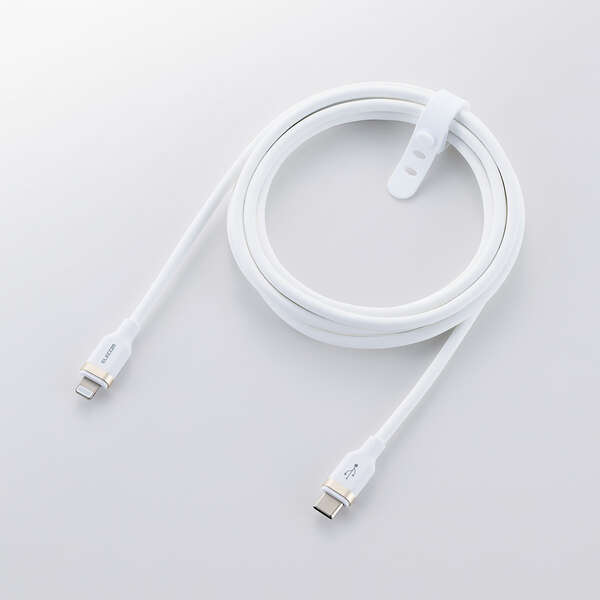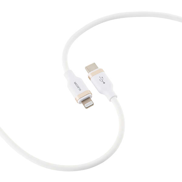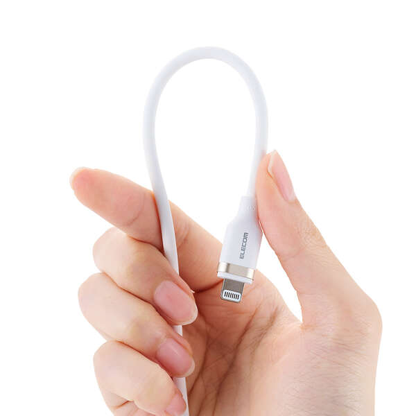 シリコン素材を採用したやわらかく、なめらかな手触りのUSB Type-C(TM)(USB-C(TM)) - Lightningケーブルです。 折り癖のつきにくさと高い耐久性を兼ね備えているので、モバイル用として束ねて持ち運ぶのにおすすめです。Lightningポートを搭載したiPhoneなどと、USB Type-Cポートを搭載したパソコンや充電器を接続し、充電・データ転送ができます。