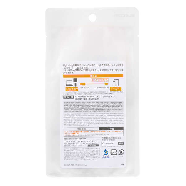 色んな表情を持ったカラフルLightningケーブル!LightningコネクタとパソコンやAC充電器のUSBポートを接続して充電・データ通信できます。※iPadはパソコンからは充電できません。