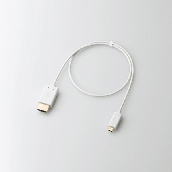 直径わずか2.5mmで、とりまわしやすいスリムタイプ!「HDMI-Micro出力端子(タイプD)」に接続できる、HIGH SPEED with Ethernet認証済み“イーサネット対応HIGH SPEED HDMI-Microケーブル”。
