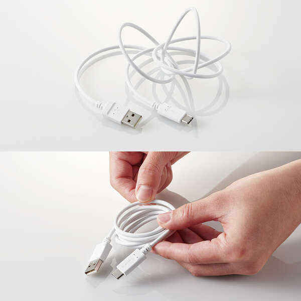 独自技術の形状記憶加工ケーブルで、使わないときや収納・持ち運びの際にケーブルをスッキリまとめることができます。