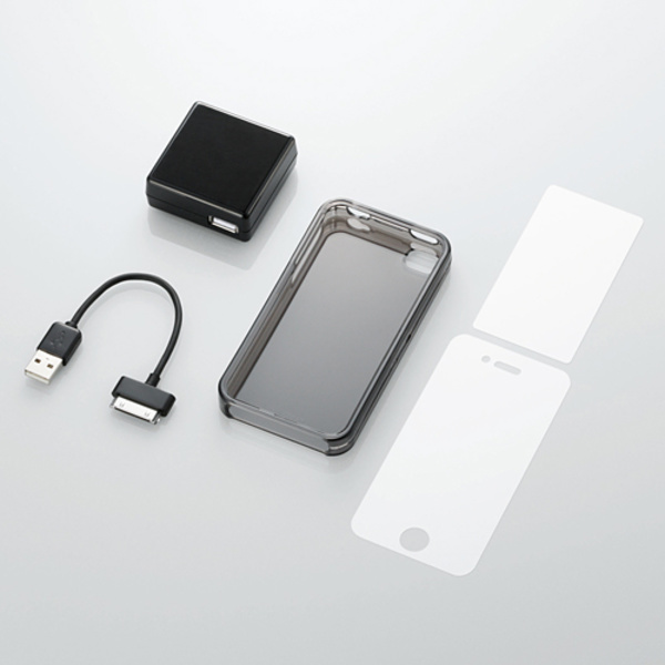 iPhone 4(16GB・32GB)を快適に利用できる充電器付き!本体をキズや汚れからしっかり守る、丈夫なポリカーボネート製ハードケースと保護フィルム。