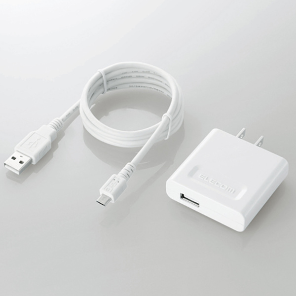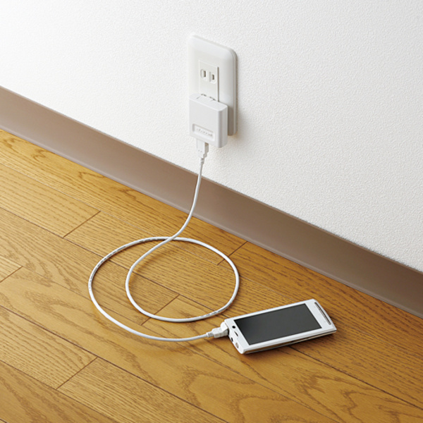 すっきりコンパクトで持ち運びにも最適!電源プラグが収納できるMicro-USBケーブル付きスマートフォン用AC充電器。