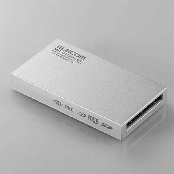 本製品は、シンプルなデザインの薄型1スロットメモリリーダです。11+9メディアに対応。(9種類のmini系のメディアはアダプタをお使いになることでご使用いただけます)SDver.2.0(SDHC)などの高速データ転送に対応しているので、大量の写真など大容量のデータを素早く移せます。