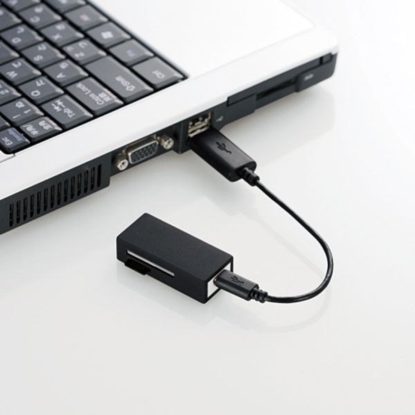 小さな消しゴムのようにかわいらしい。携帯に便利な、超コンパクトなカードリーダ。