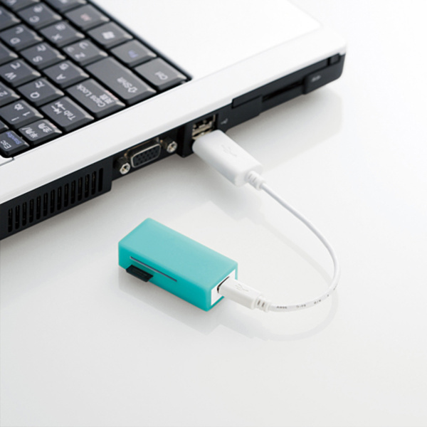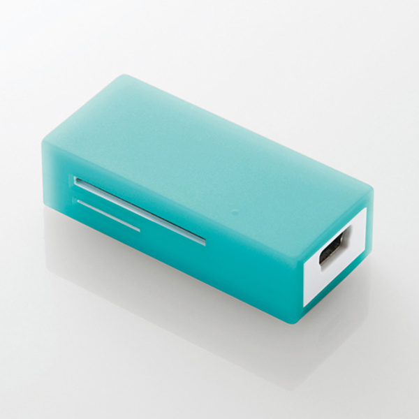 小さな消しゴムのようにかわいらしい。携帯に便利な、超コンパクトなカードリーダ。