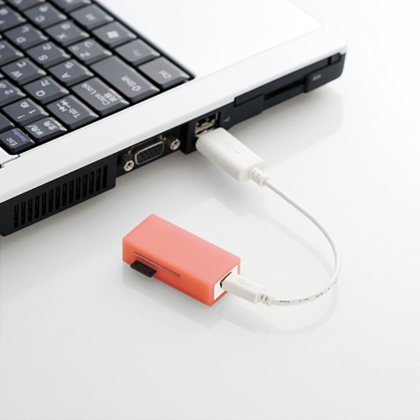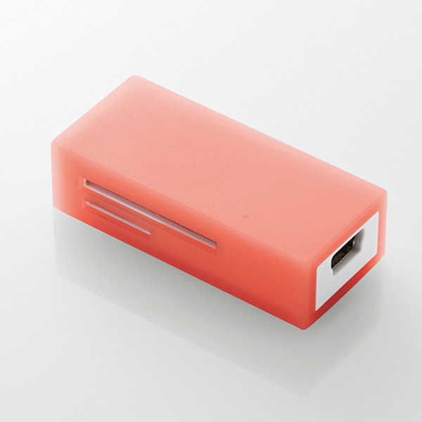 小さな消しゴムのようにかわいらしい。携帯に便利な、超コンパクトなカードリーダ。
