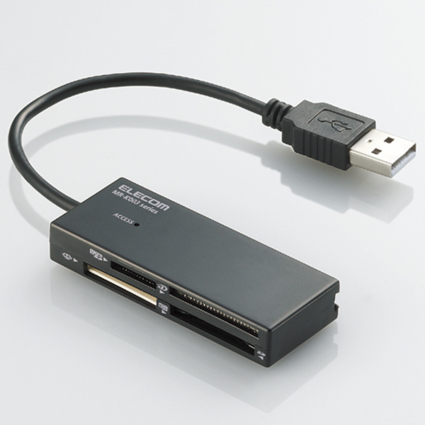 SDカードシリーズ、メモリースティックシリーズ(M2を除く)、xDピクチャーカードなど主要なメディアがアダプタなしで読み書きできる!44+2メディア対応のメモリリーダライタ。