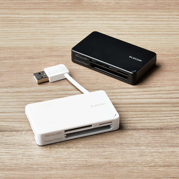 ケーブル収納タイプで42種類のメディアに対応したUSB2.0カードリーダー