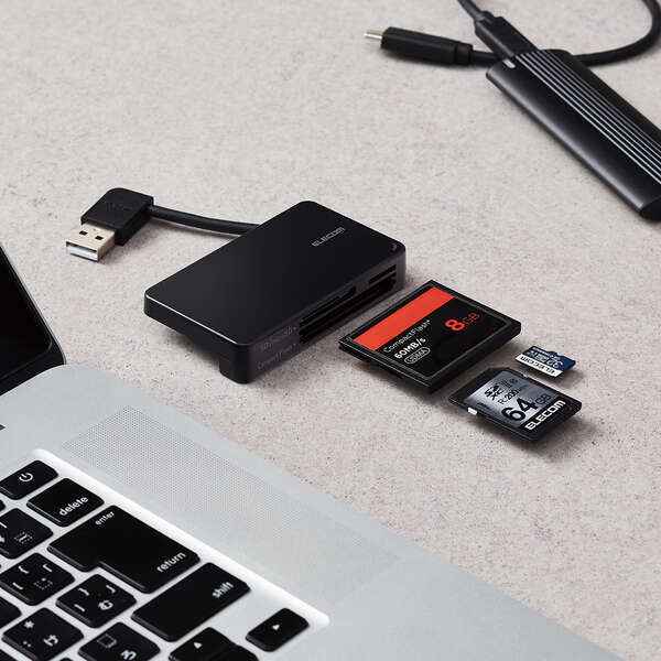 SDメモリーカードシリーズ、microSDメモリーカードシリーズ、コンパクトフラッシュに対応しています。