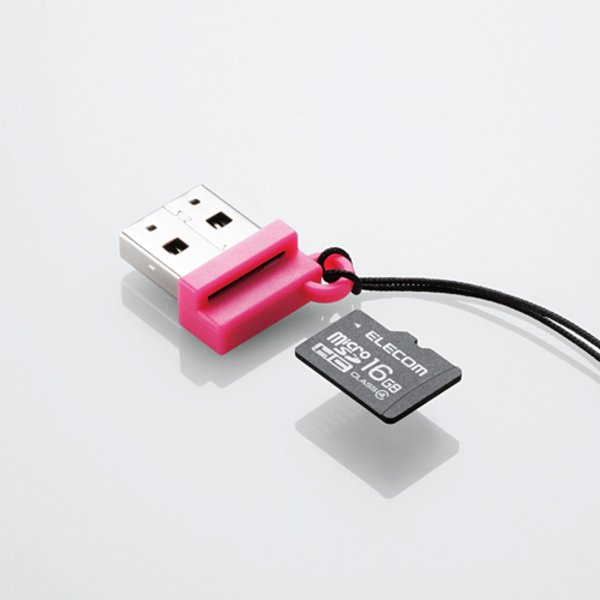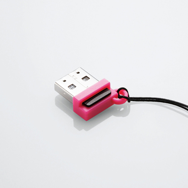 ポップなカラーのステーショナリーデザイン!携帯電話にも装着できるストラップが付いた、microSD専用メモリカードリーダ。