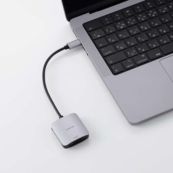 撮影データの転送をもっと速く快適に!パソコンやスマホ、タブレットへの接続に便利な、USB Type-C(TM)プラグのケーブル付きメモリーカードリーダーです。デジタルカメラやアクションカメラで撮影した画像や映像データを接続した機器へ転送可能。撮影データの編集やSNSへアップする際に便利です。