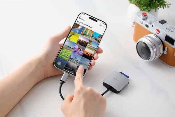SDカードとmicroSDカードの2つのスロットを搭載。デジタルカメラやアクションカメラで撮影してSDカード/microSDカードに保存した画像や映像データを、スマートフォンやパソコンに取り込めます。撮影データの編集やSNSへアップする際に便利です。