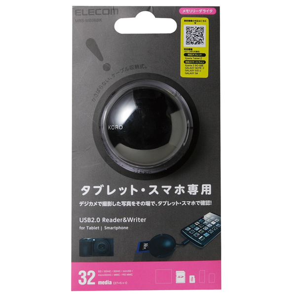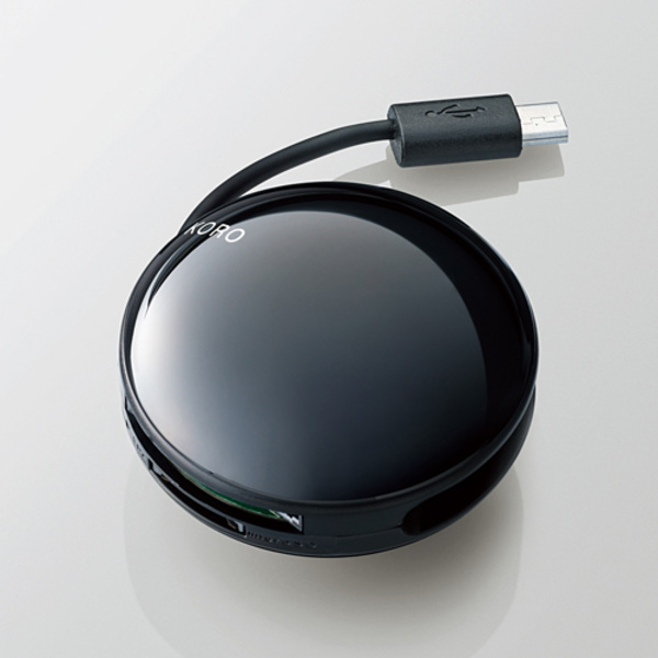 タブレットやスマートフォンにそのまま接続できるUSB[microB]コネクタを搭載!ケーブルを本体に収納でき、コロンとしたフォルムが愛らしいメモリリーダライタ。