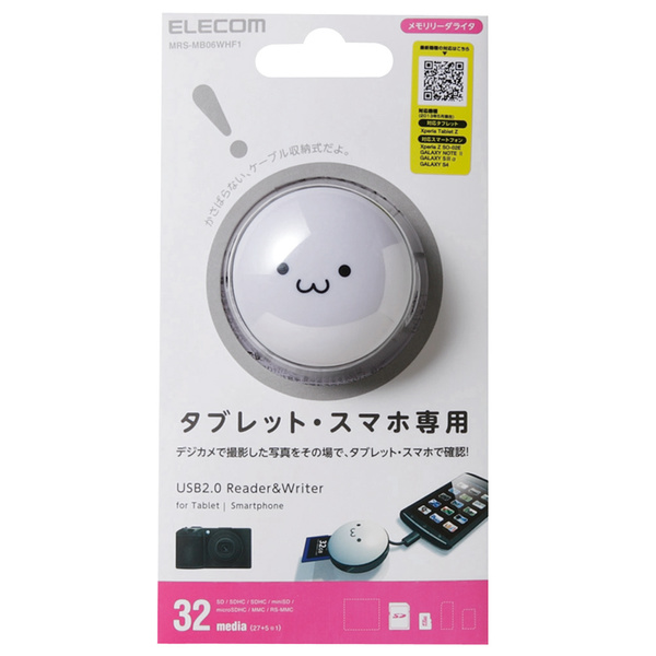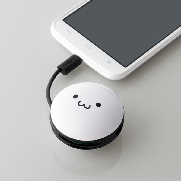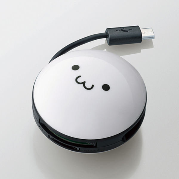 タブレットやスマートフォンにそのまま接続できるUSB[microB]コネクタを搭載!ケーブルを本体に収納でき、コロンとしたフォルムが愛らしいメモリリーダライタ。