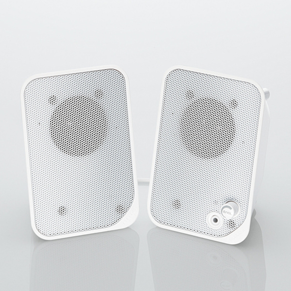 ステーショナリー感覚で選べるポップなカラー&デザイン。タテ置きでもヨコ置きでも使用できるマルチメディアスピーカ。