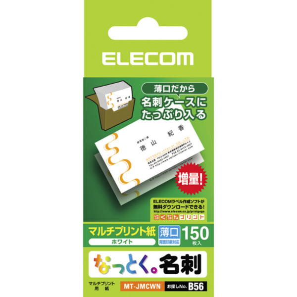 文字やイラストの印刷に適した上質紙タイプの名刺(厚口)です。名刺サイズにカット済みなので、切り分ける手間がかかりません。