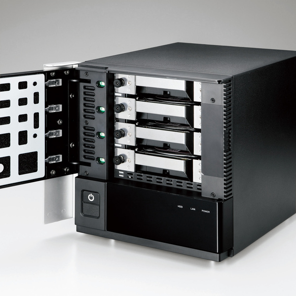 高速CPUを搭載した Windows Storage Server 2016 Workgroup Edition搭載の4ベイボックス型 NASユニットです。QuadCore2.0GHzCPU搭載で、処理性能が倍増しています(※PASSMARKベンチ比較)。ウイルスチェックソフト等のアプリケーションを同時利用しても快適に動作できます。登録可能ユーザが50ユーザまでという制限があります。