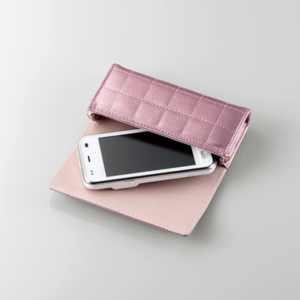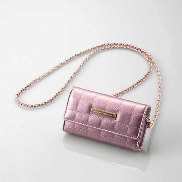 スマートフォンのちょっとした持ち運びにとっても便利!肩からの斜め掛けができるロングチェーンが付いたスマートフォン用ショルダーポーチ。