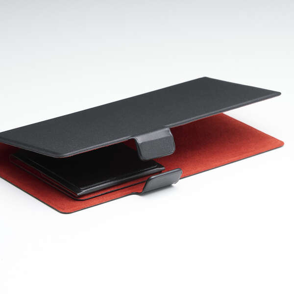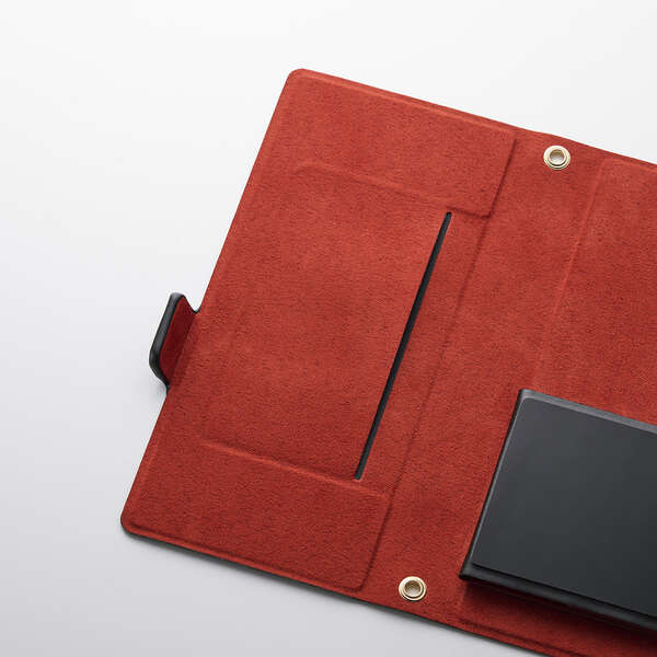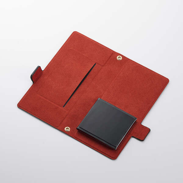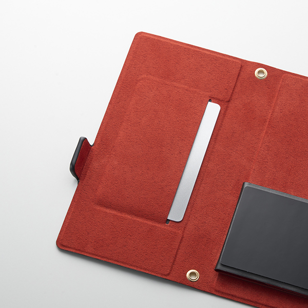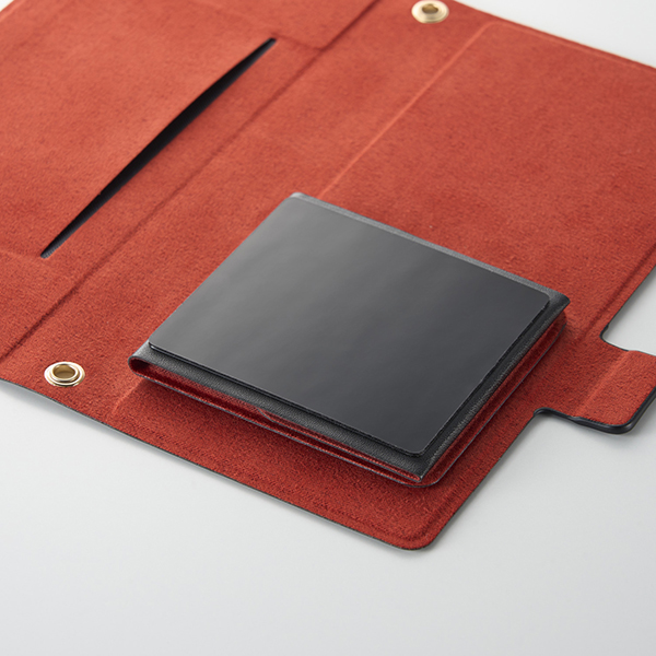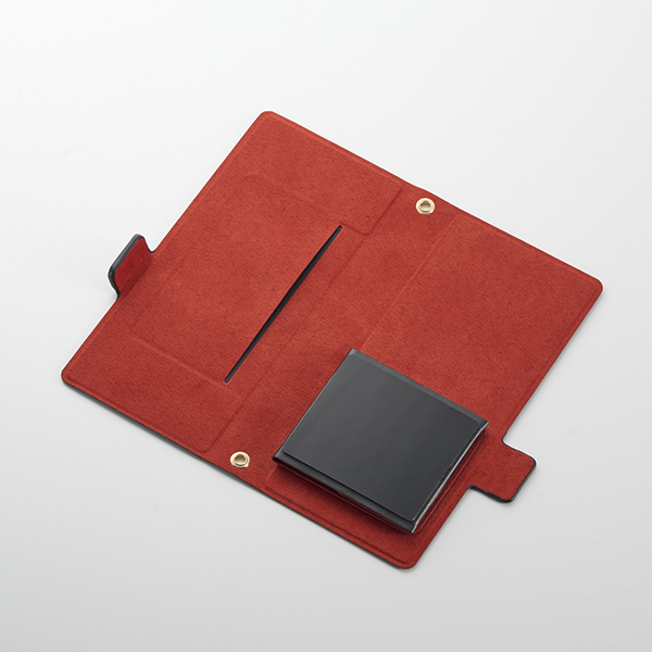フラップの内側に、メモやカードなどが収納できるポケットが付いています。カードを出し入れすることなく、そのままICカードを使用可能です。