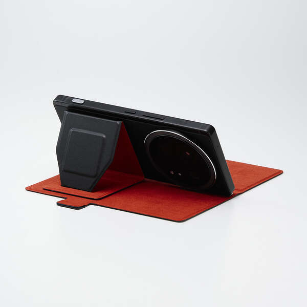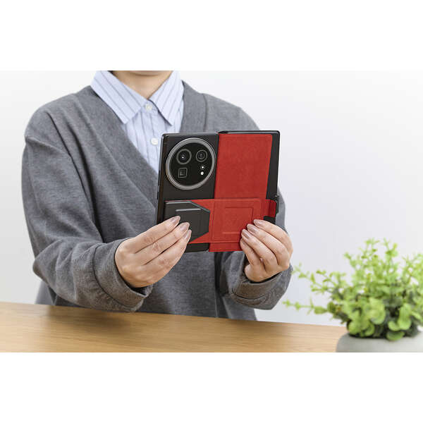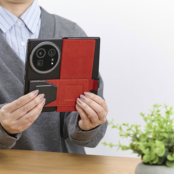 背面のフラップを折りたたむことで、装着したまま写真撮影が可能です。