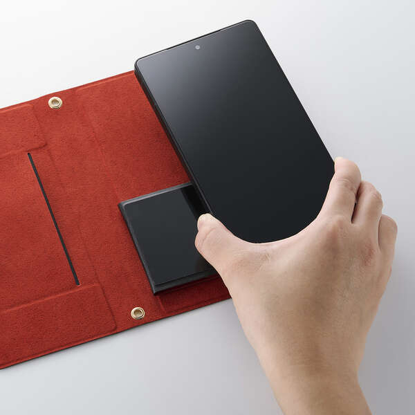 スマートフォンがピタッとくっつく自己吸着シートを採用し、端末を選ばずに使用できます。
