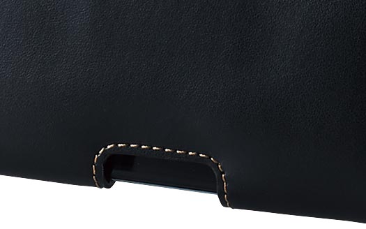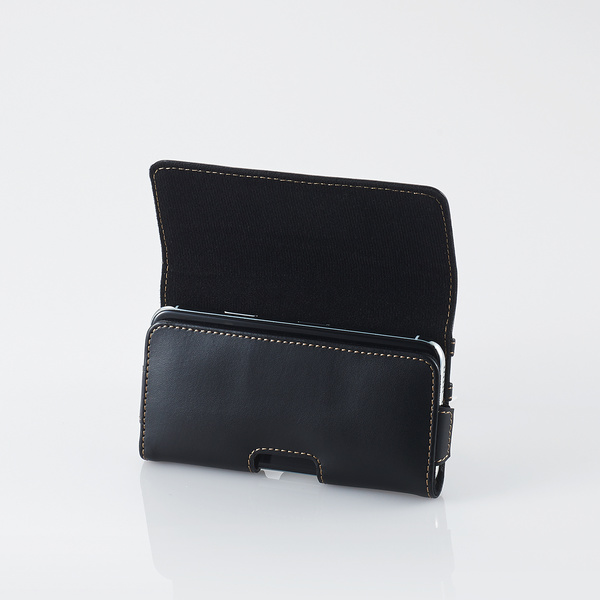 ケースサイド部に伸縮素材を使用し、スマートフォンのスムーズな取り出しを実現します。