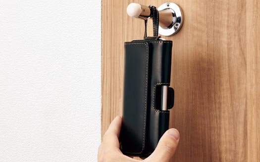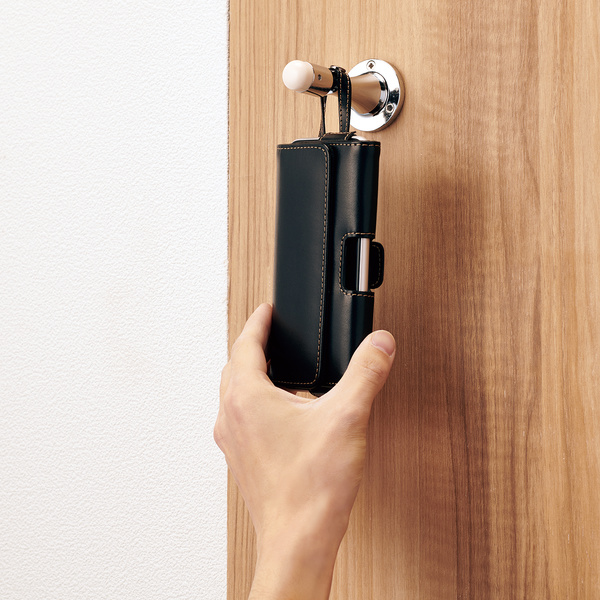 フックなど様々な場所に掛けられ、トイレでの落下防止にも便利なループが付いてます。ループは、ケース背面のベルトクリップ上部にスナップボタンで固定できるようになっているため使用時に邪魔になりません。