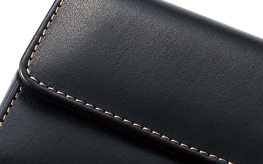 ケース表面はキズに強く汚れにくいソフトレザー素材を使用しています。