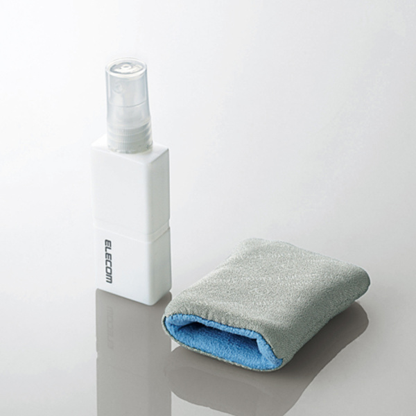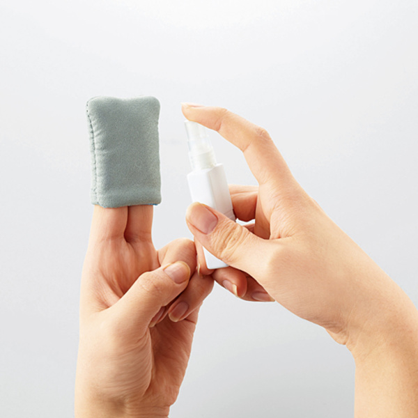 スプレーボトルを収納できて持ち運びに便利!スマートフォンやタブレットのタッチパネルの汚れを拭き取れるクリーニング液付きのタッチパネルクリーナー。