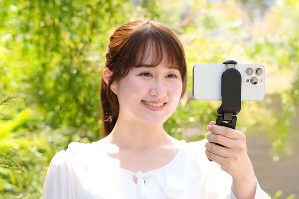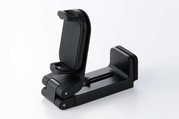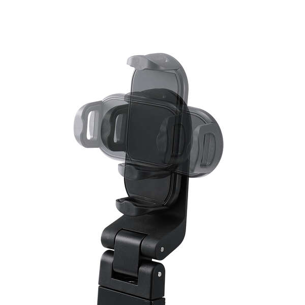 ホルダー部360度回転可能。軸は縦に180度、左右に360度と自由にアングルを変更でき、縦向きでも横向きでもシーンに合わせて使用できます。