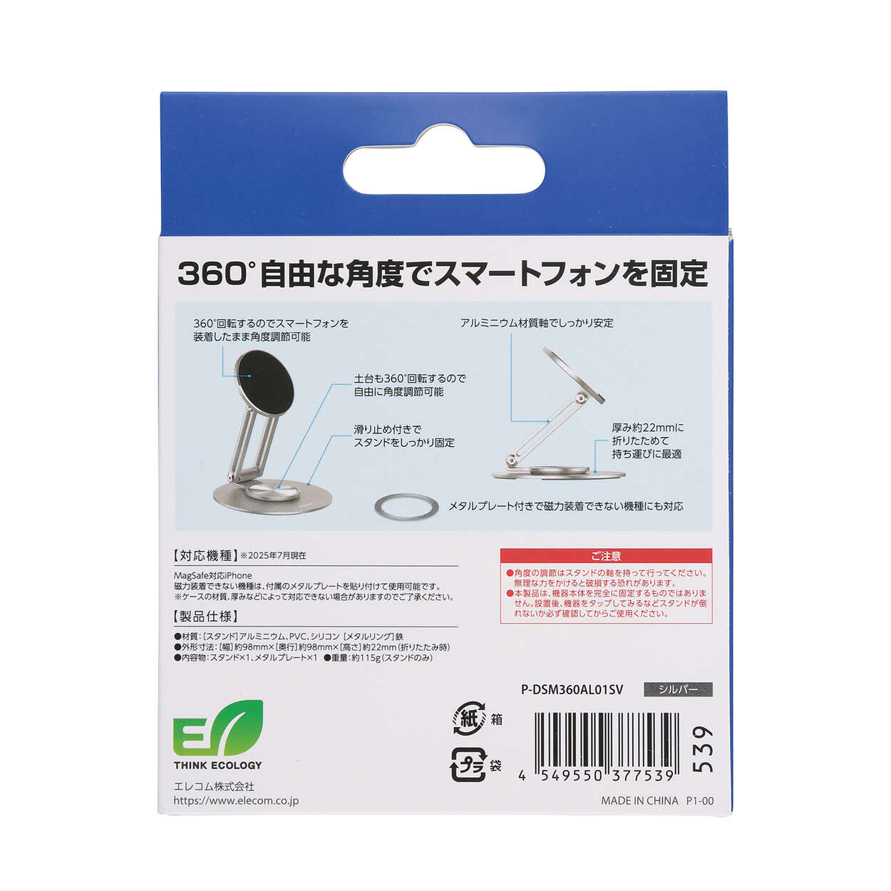 マグネット部分は360度回転し、スマホの縦向き・横向きの切り替えがスムーズです。